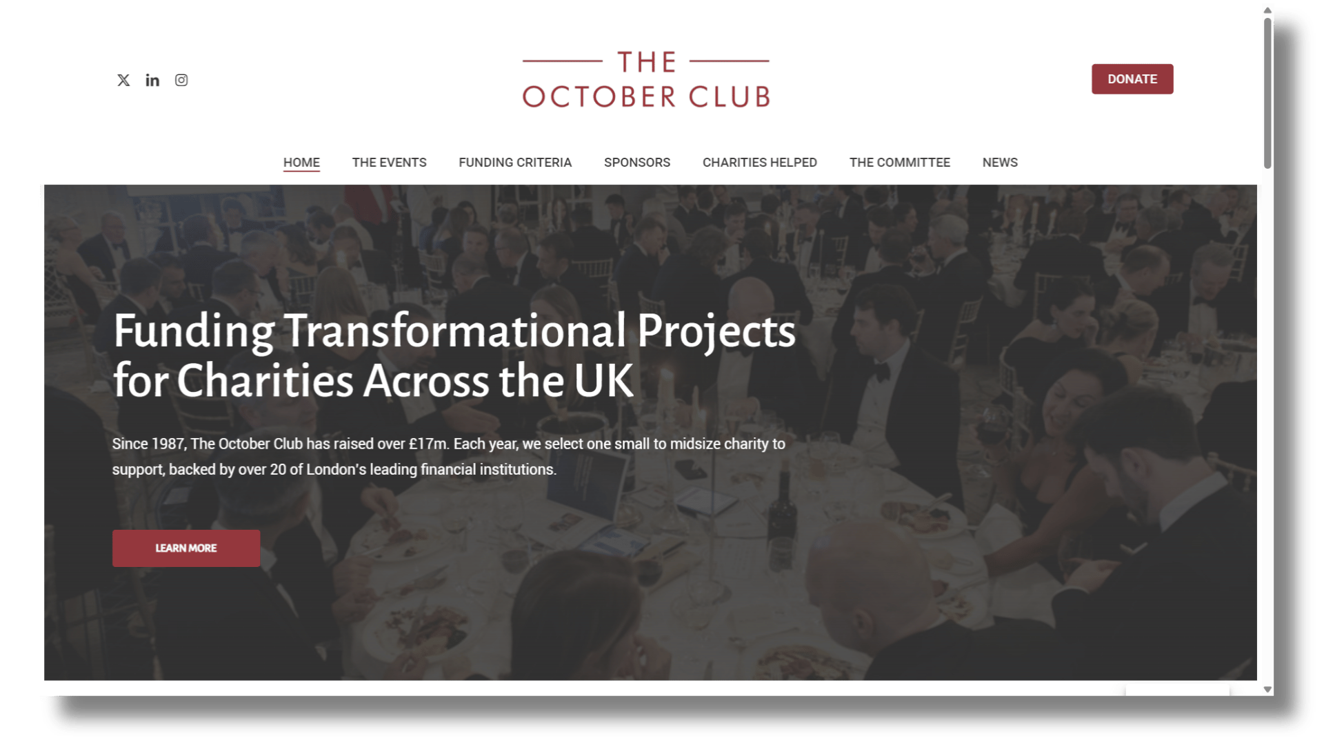 The October Club needed to modernize its digital presence to better communicate its charitable mission, attract new sponsors, and engage the London financial community in its annual fundraising events.